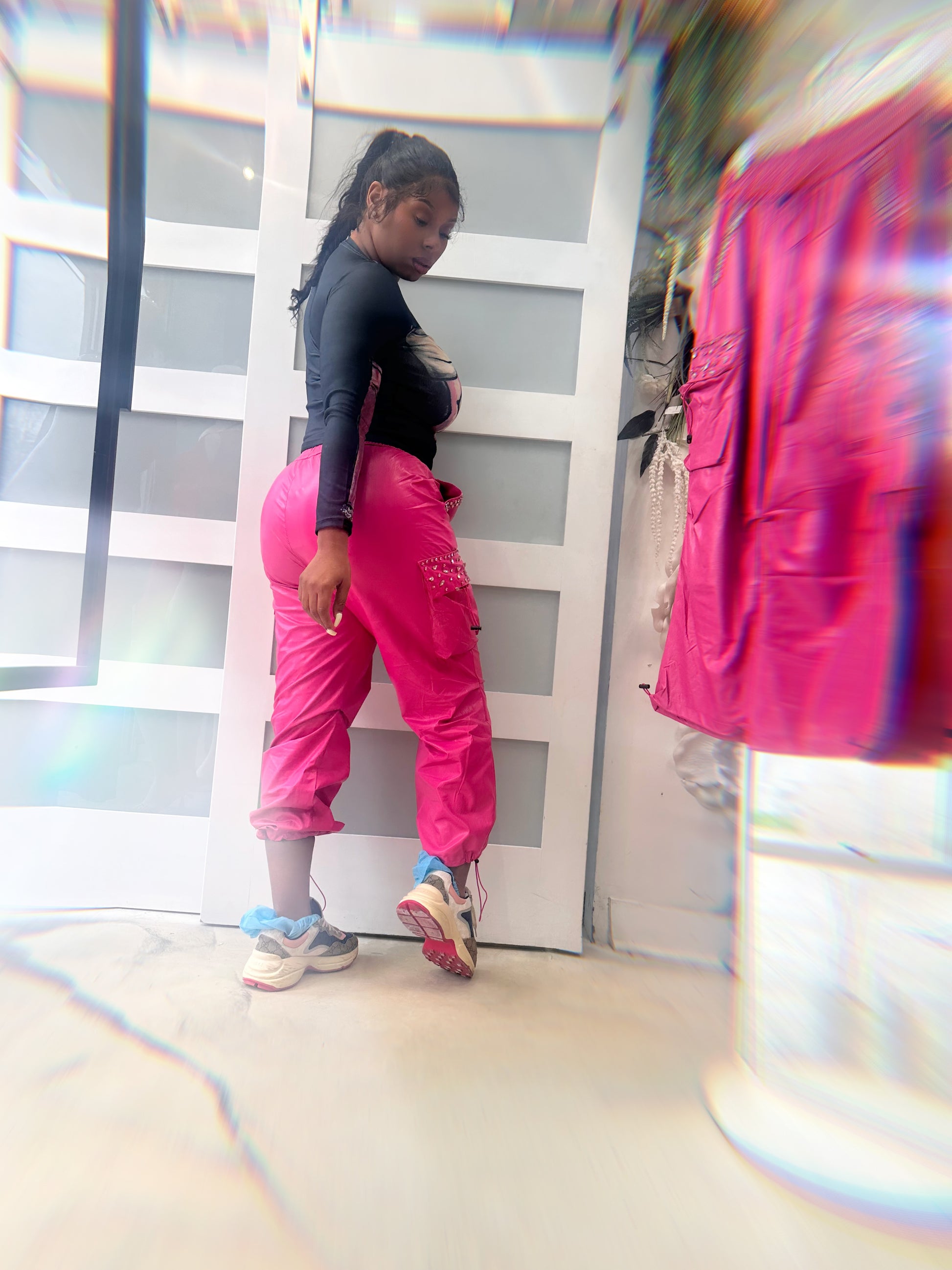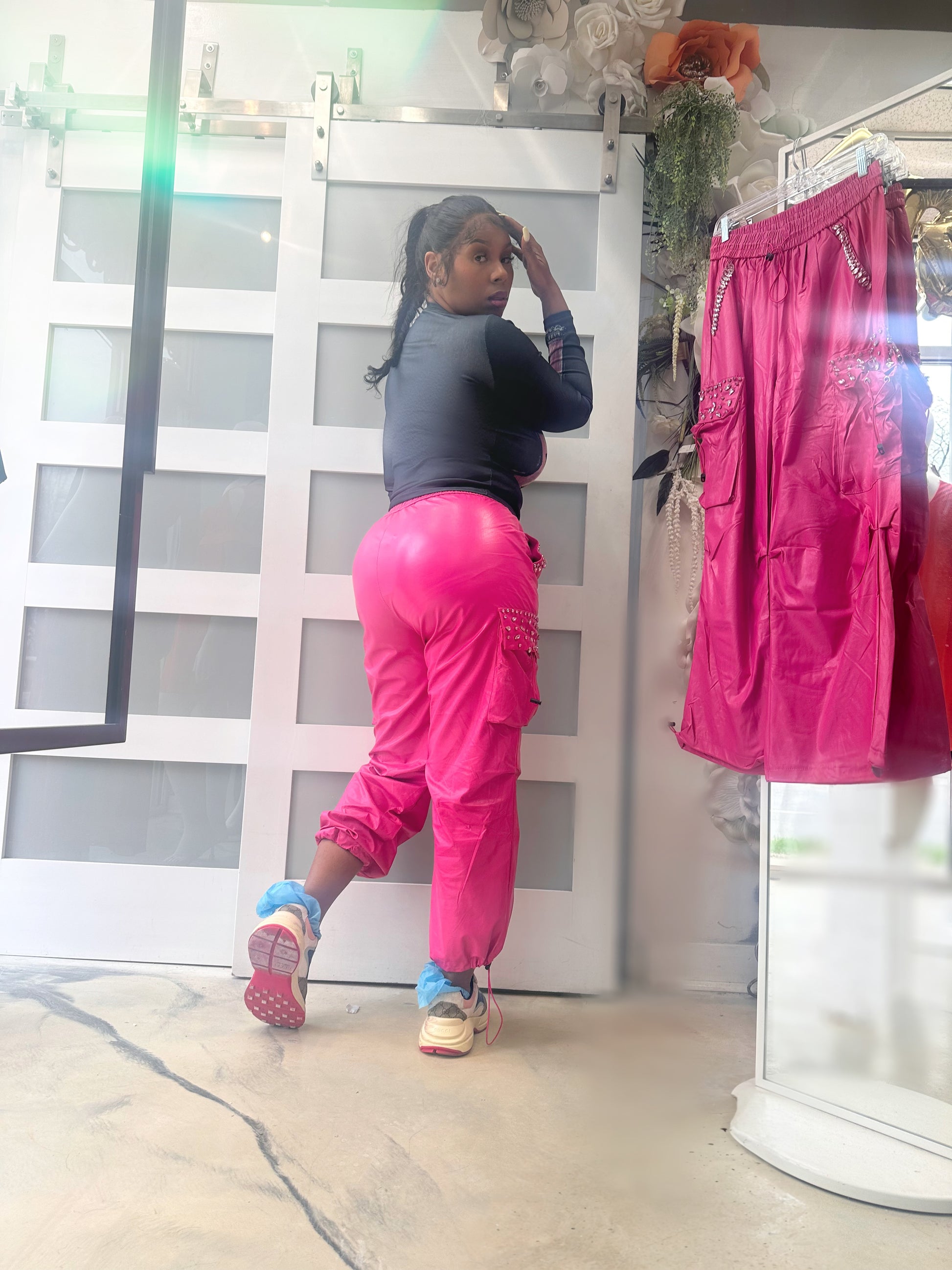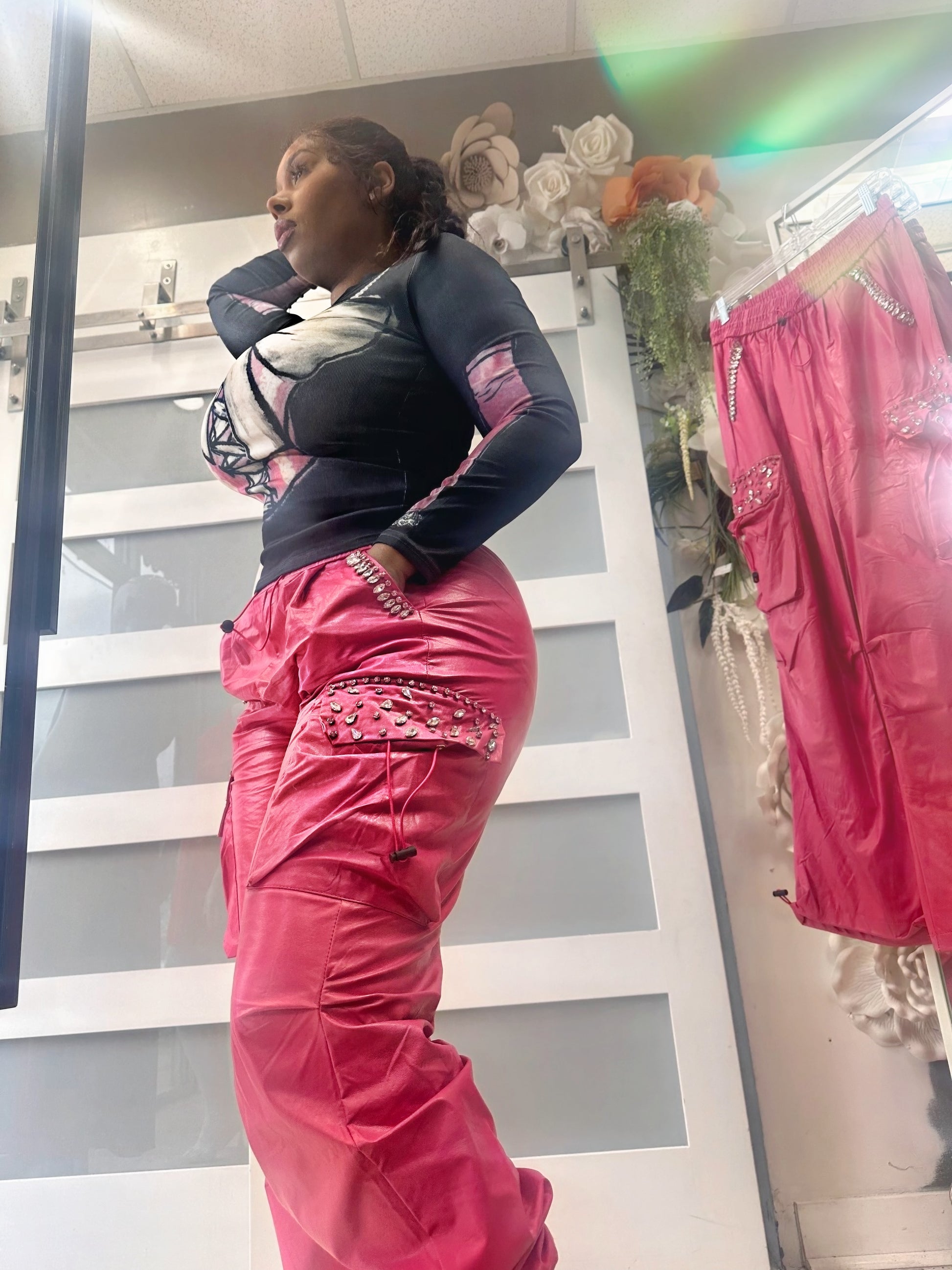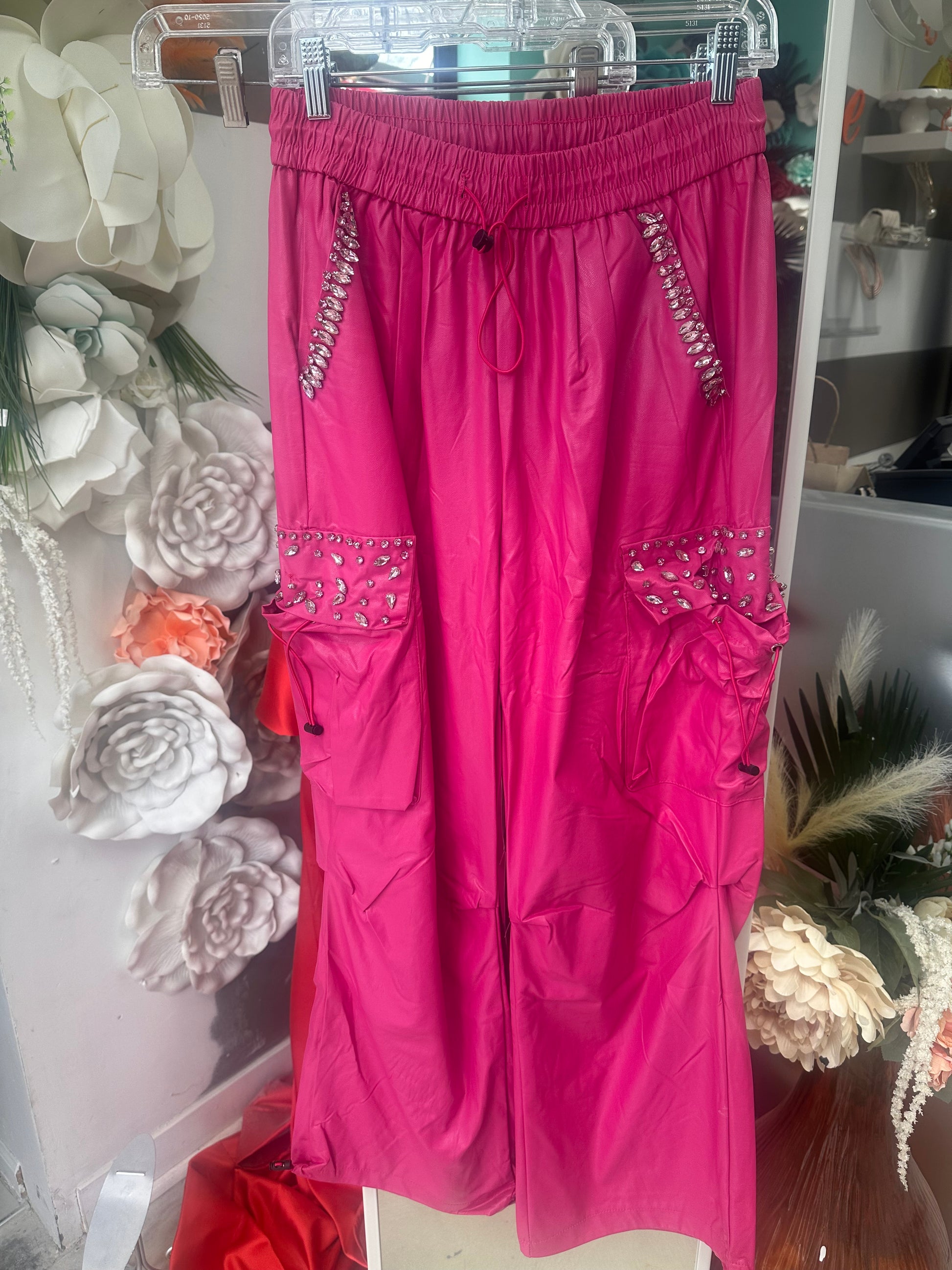 Add a touch of glamour to your wardrobe with Zcouture's Furshia Faux Leather joggers. These stylish pants feature eye-catching bling accents, convenient cargo pockets, and adjustable drawstrings around the ankle and waist. Perfect for fashion-forward ladies, these joggers can be dressed up with pumps or dressed down with gym shoes for a versatile statement piece.