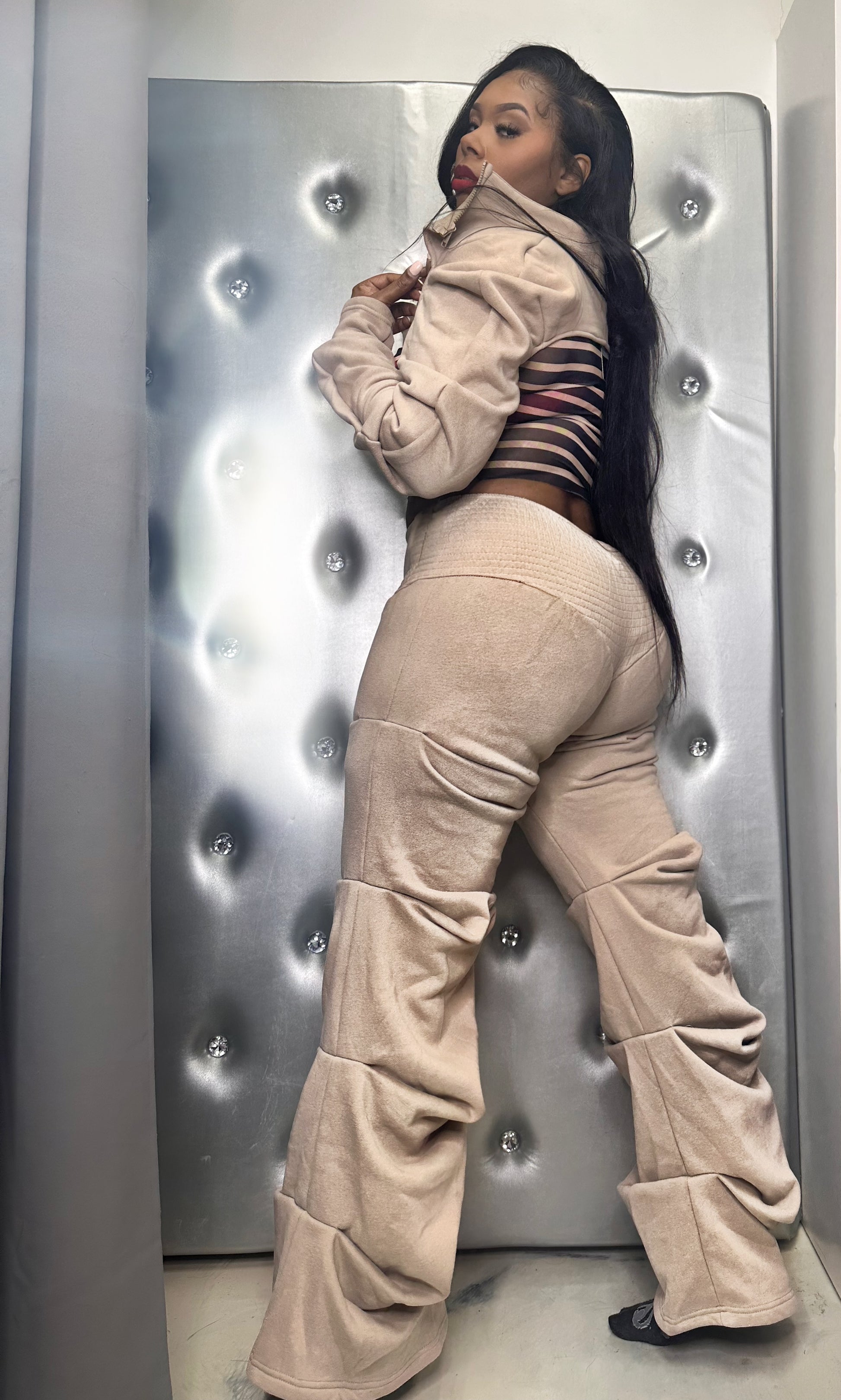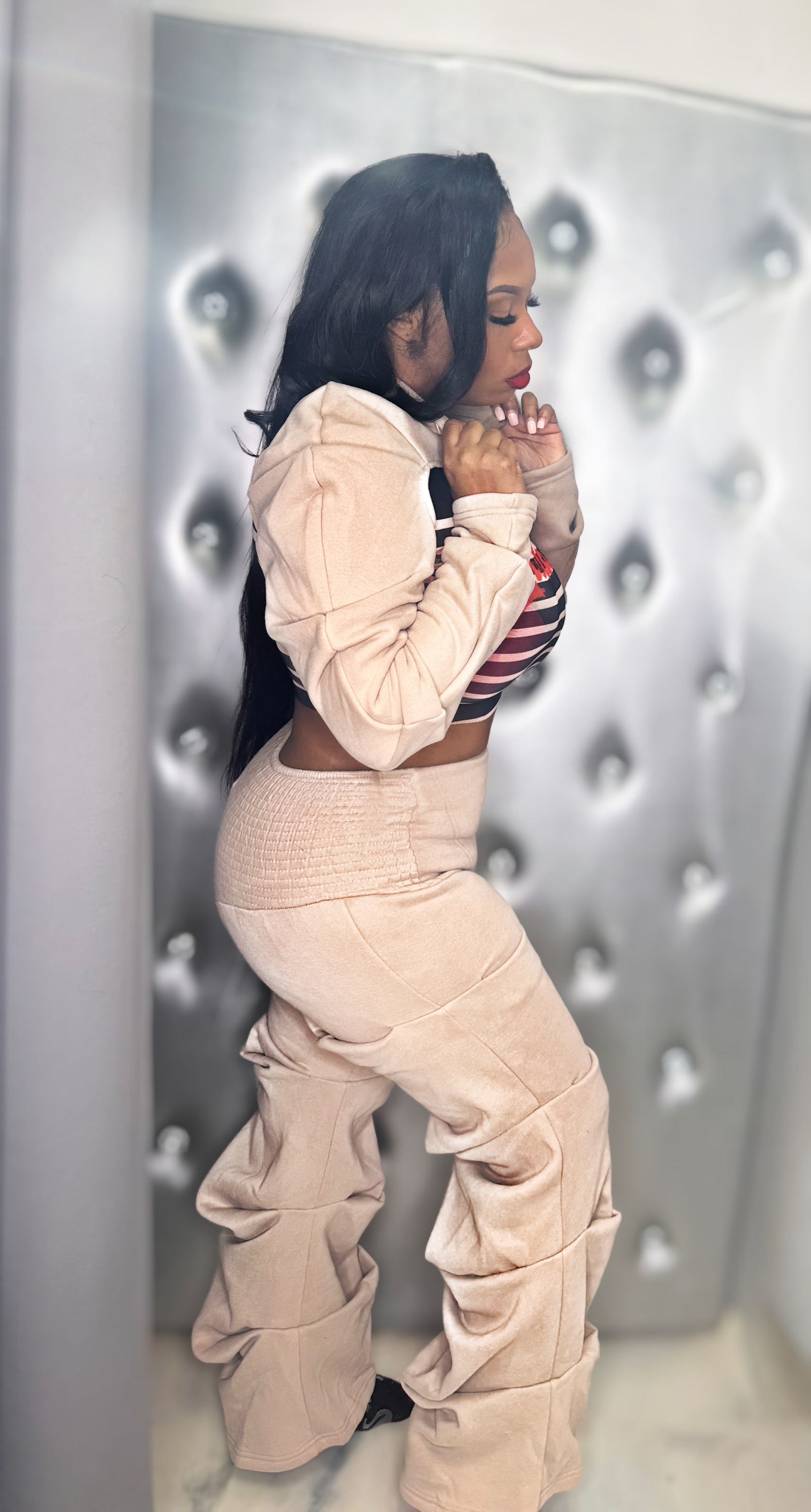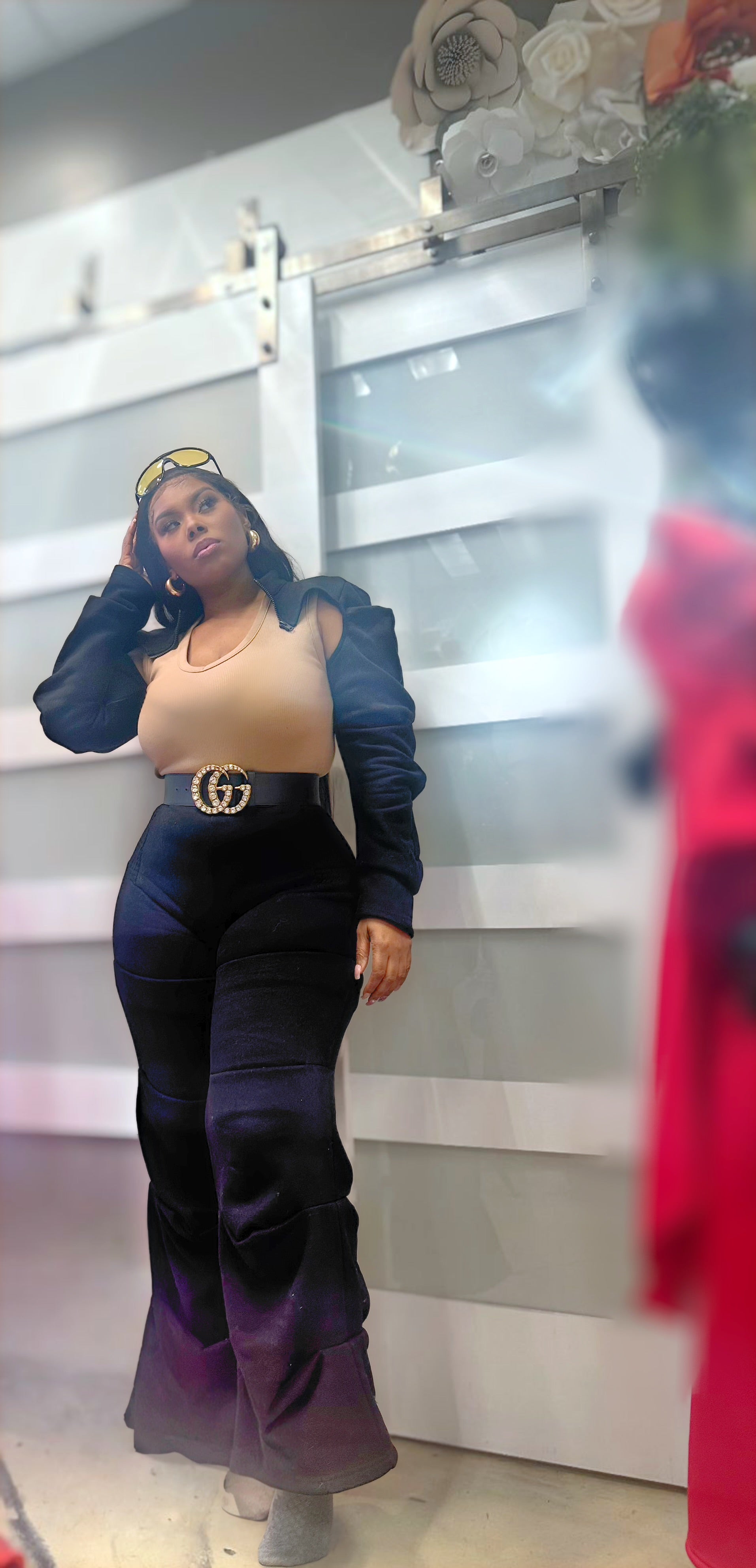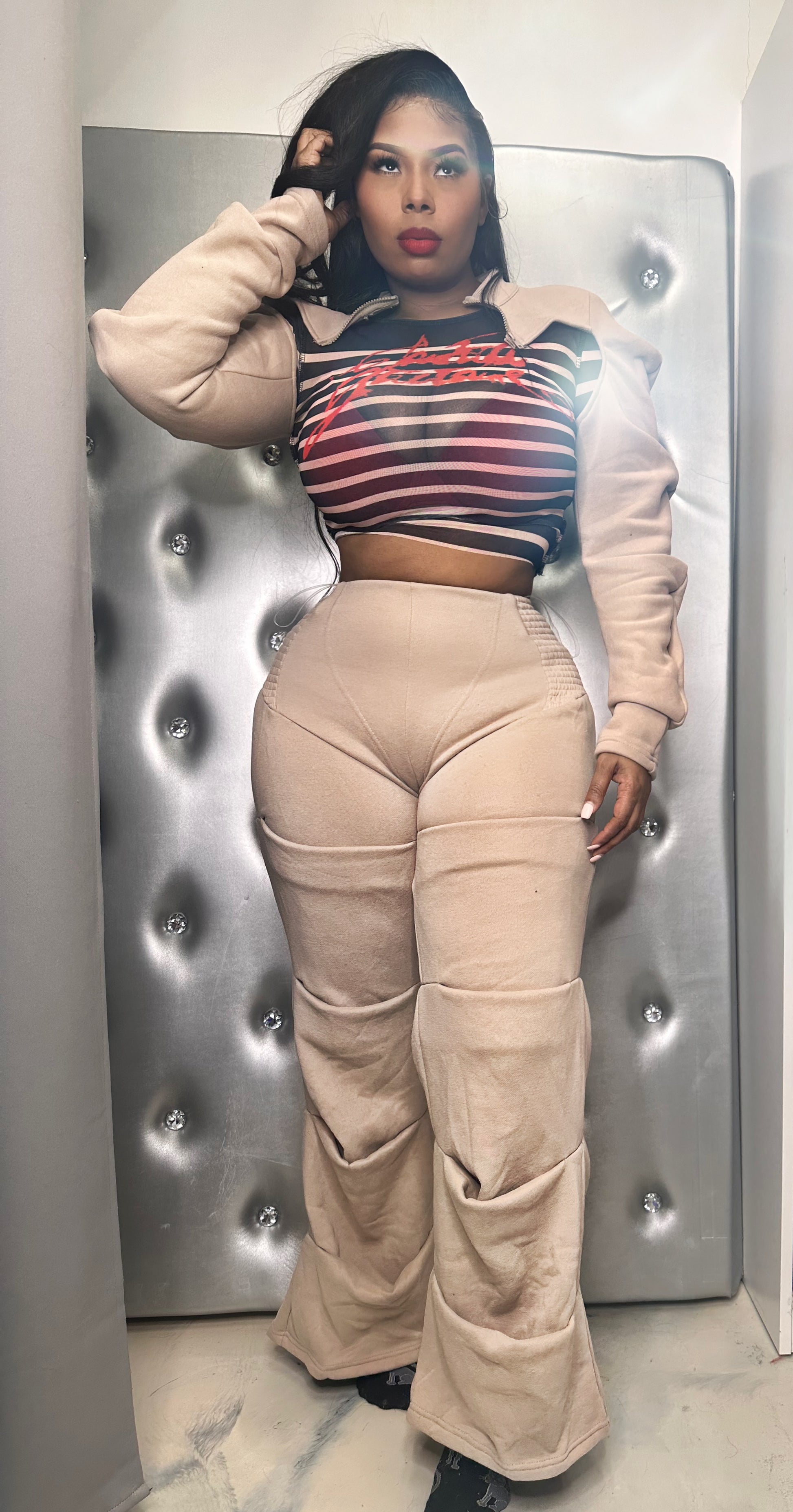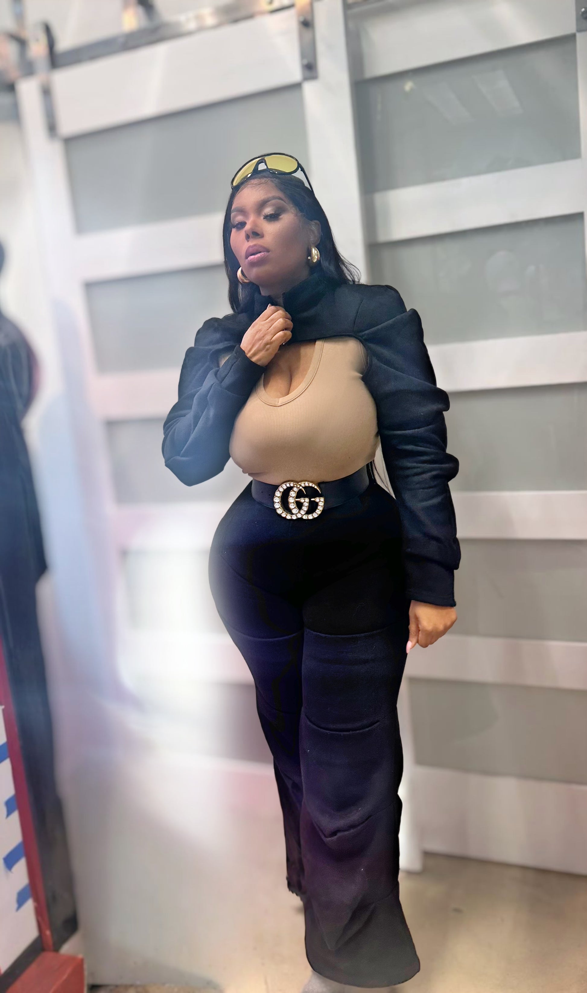 This It’s Givin Stacked Jogger set is a fashion-forward staple piece that combines chic style with comfort. Perfect for dressing up or down for everyday wear, these joggers feature a high-waisted corset design and are paired with a half jacket featuring puff shoulder detailing. Don't miss out on this fashionable and versatile addition to your wardrobe.