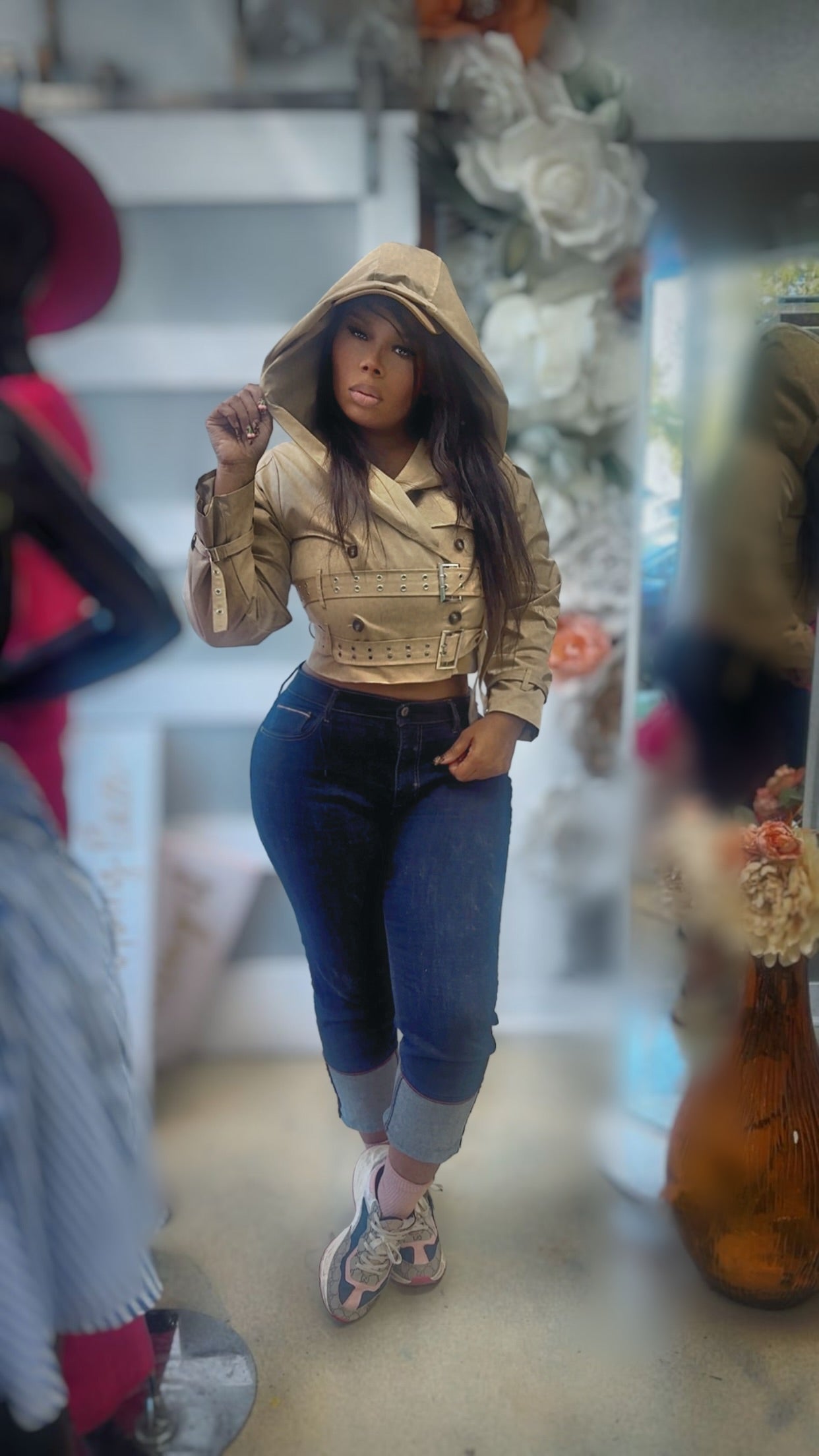 Indulge in ultimate luxury with The G Trench - a chic, fashion-forward, double-breasted crop hooded jacket that is a must-have for all style mavens. Perfect for the fall season, this essential piece pairs effortlessly with jeans and pumps for a sophisticated look, or can be dressed down with a stylish baseball cap. Elevate your wardrobe with this statement piece from Zcouture.