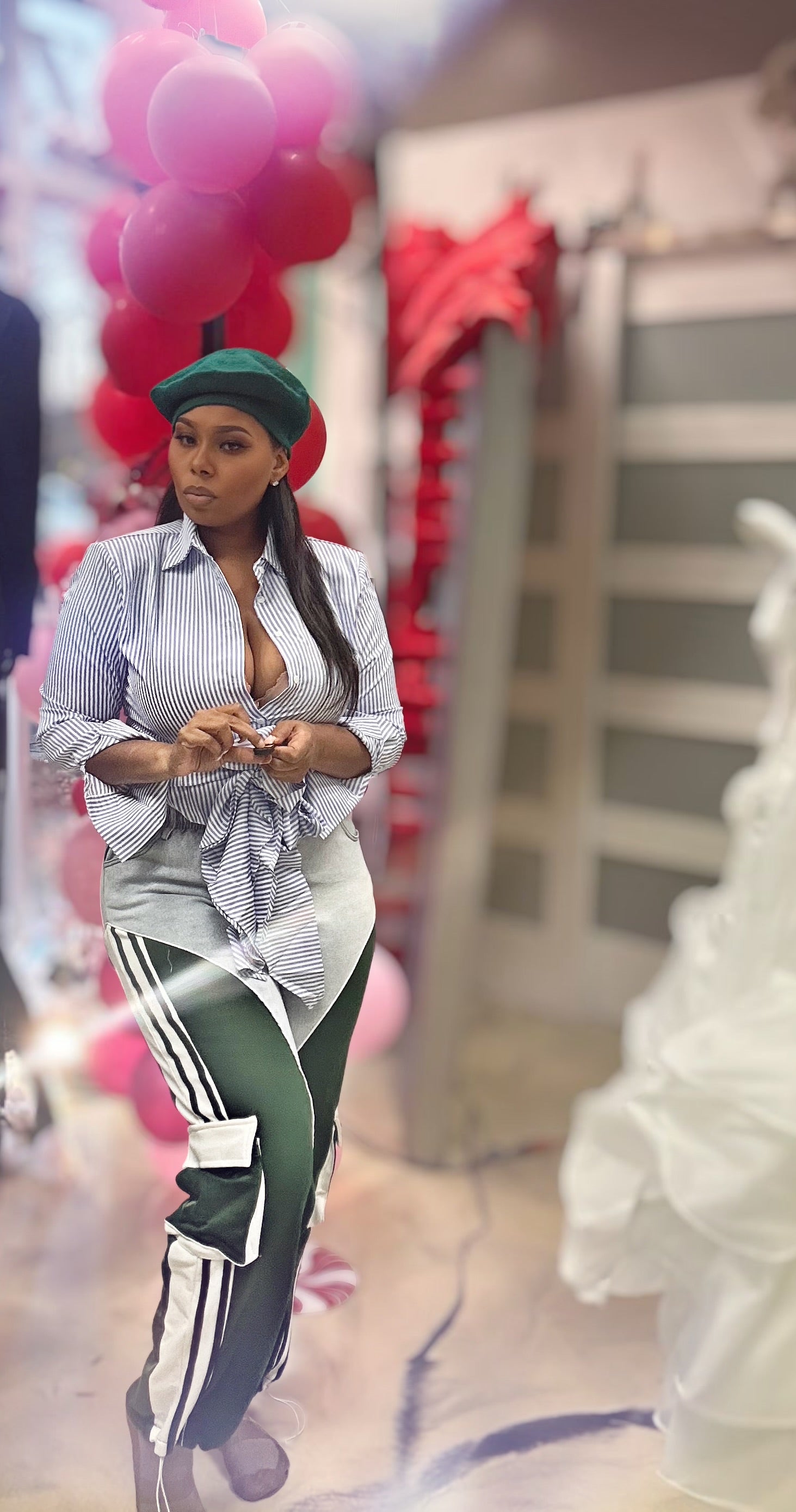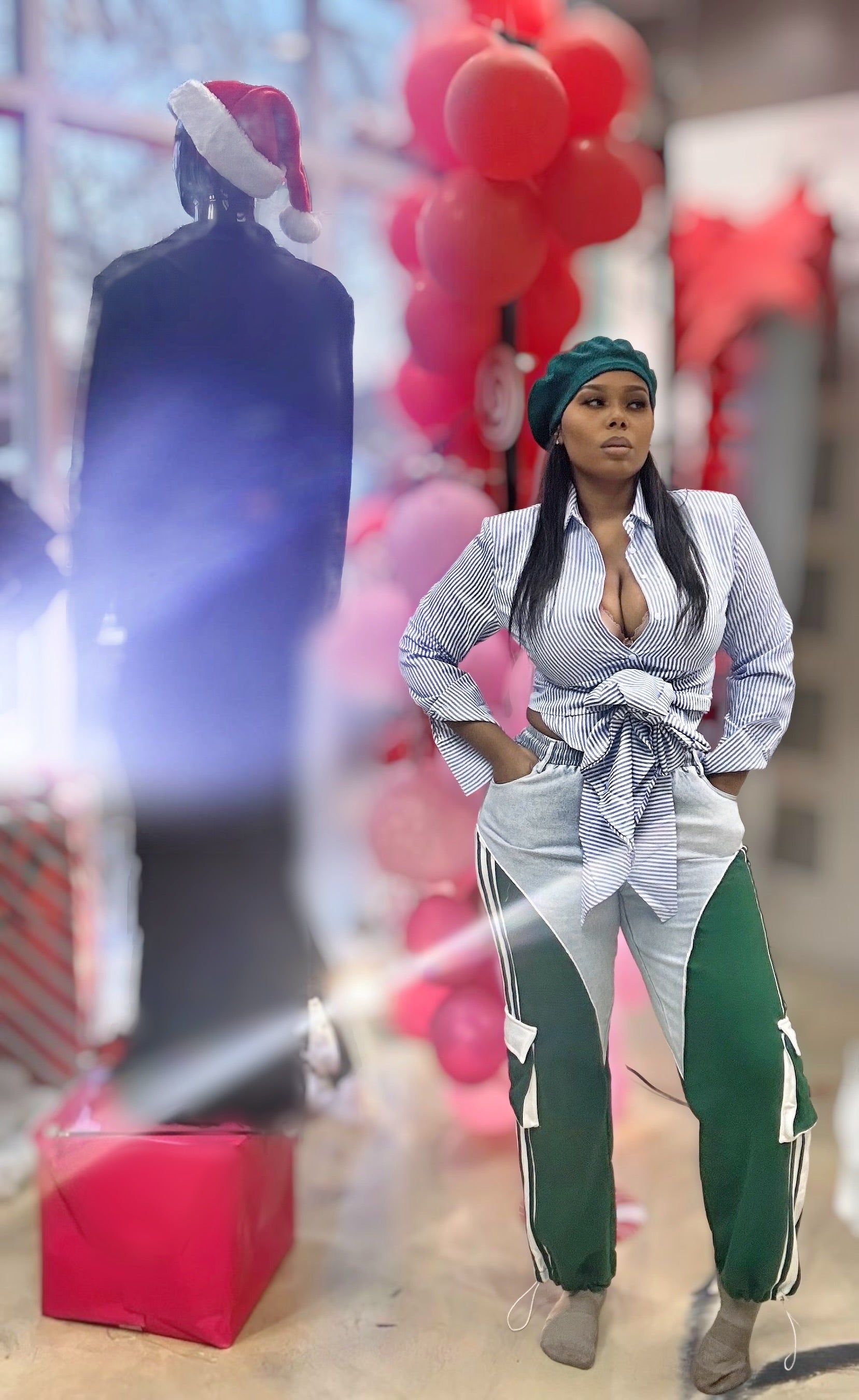 Elevate your style with Zcouture's trendy Sweet Pea denim and sweats joggers. In hunter green, these joggers can be dressed up with a pair of heels for a statement piece. Perfect for brunch or a dinner with bae.